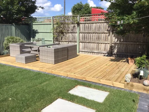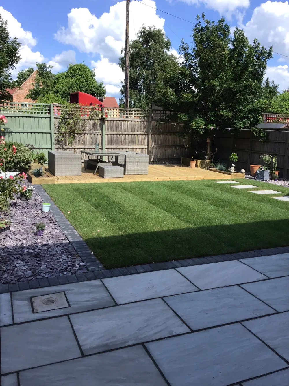 "Completed my decking, turfing and patio exactly as requested. Could not be happier. Hassle free and excellent quality end result. Would recommend 100%"
